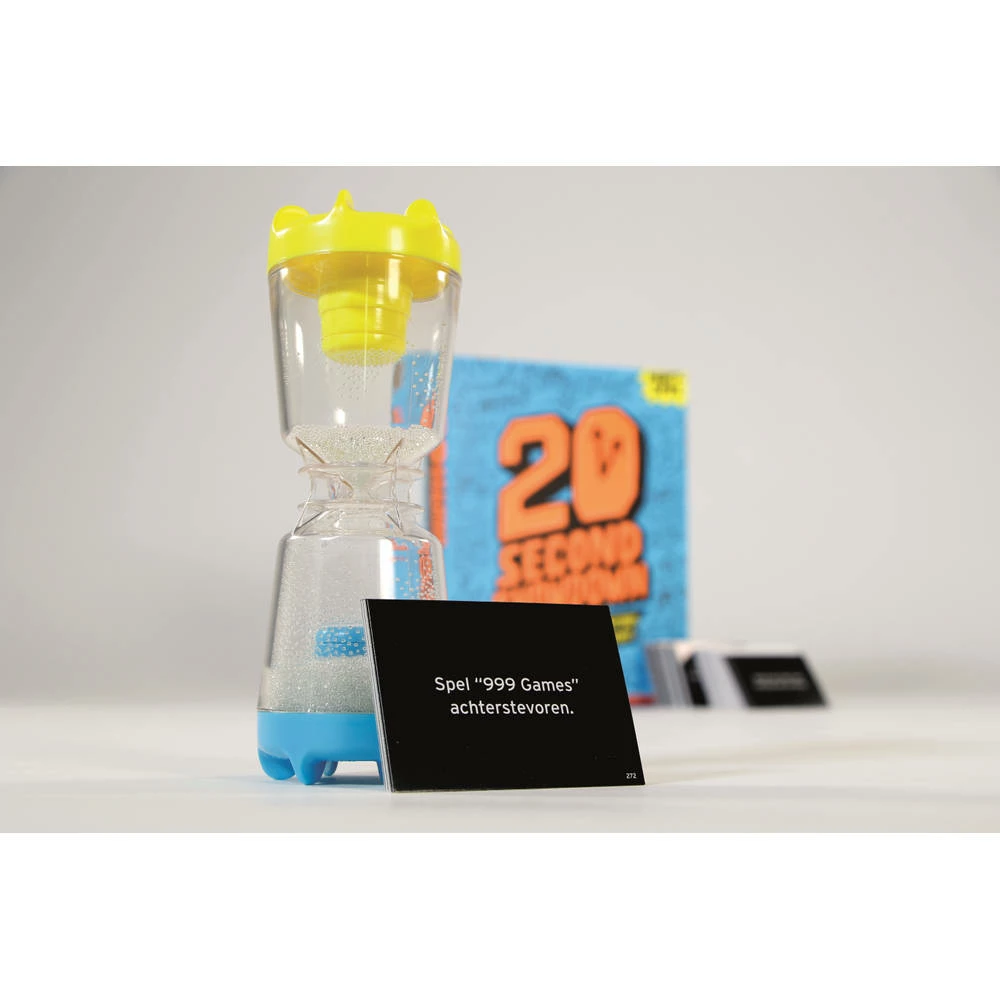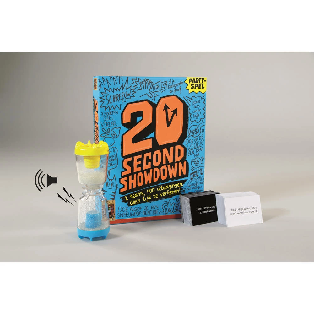 Saaie middagen behoren tot het verleden met dit 20 Second spel. Showdown 2 teams, 400 uitdagingen. Geen tijd te verliezen! In dit doldwaze partyspel vol belachelijke, hilarische uitdagingen probeer je als team zo snel mogelijk opdrachten te vervullen om ervoor te zorgen dat het andere team ‘geen zand’ meer heeft. Het eerste team dat drie rondes wint, wordt tot 20 Second Showdown kampioen gekroond.