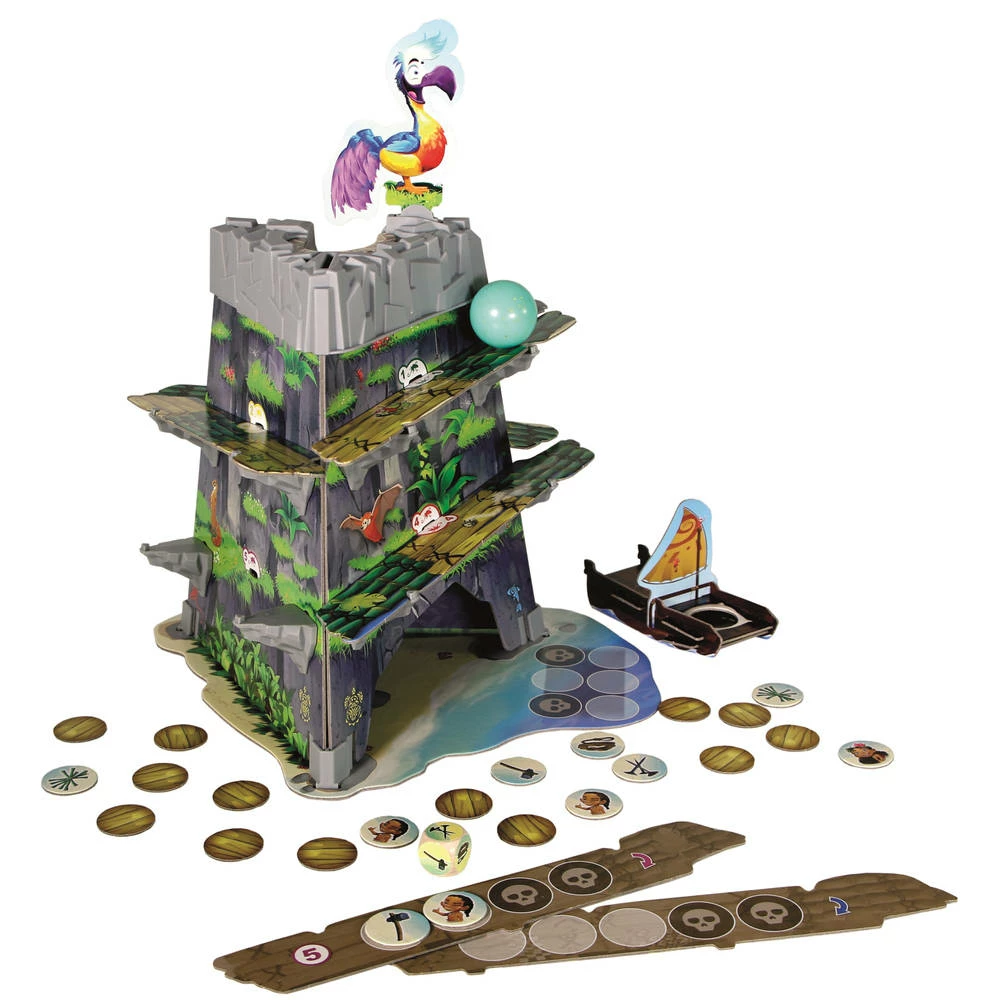 Laat zien dat je het uitgebroede ei van Dodo kunt redden door het in goede banen te leiden. Rol eerst met de dobbelsteen en het bijbehorende fiche. Als je genoeg fiches hebt, kun je bruggen bouwen en het ei in goede banen leiden. Onthoud waar welke onderdelen liggen om het ei heel te houden!