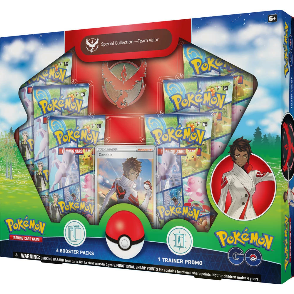Niets is leuker dan de wereld ontdekken samen met je teamgenoten. Laat andere Pokémontrainers vol trots weten tot welk team jij behoort met een coole pin van Team Valor. De set bevat onder meer een speelbare kaart van teamleider Candela en wel 6 boosterpacks.