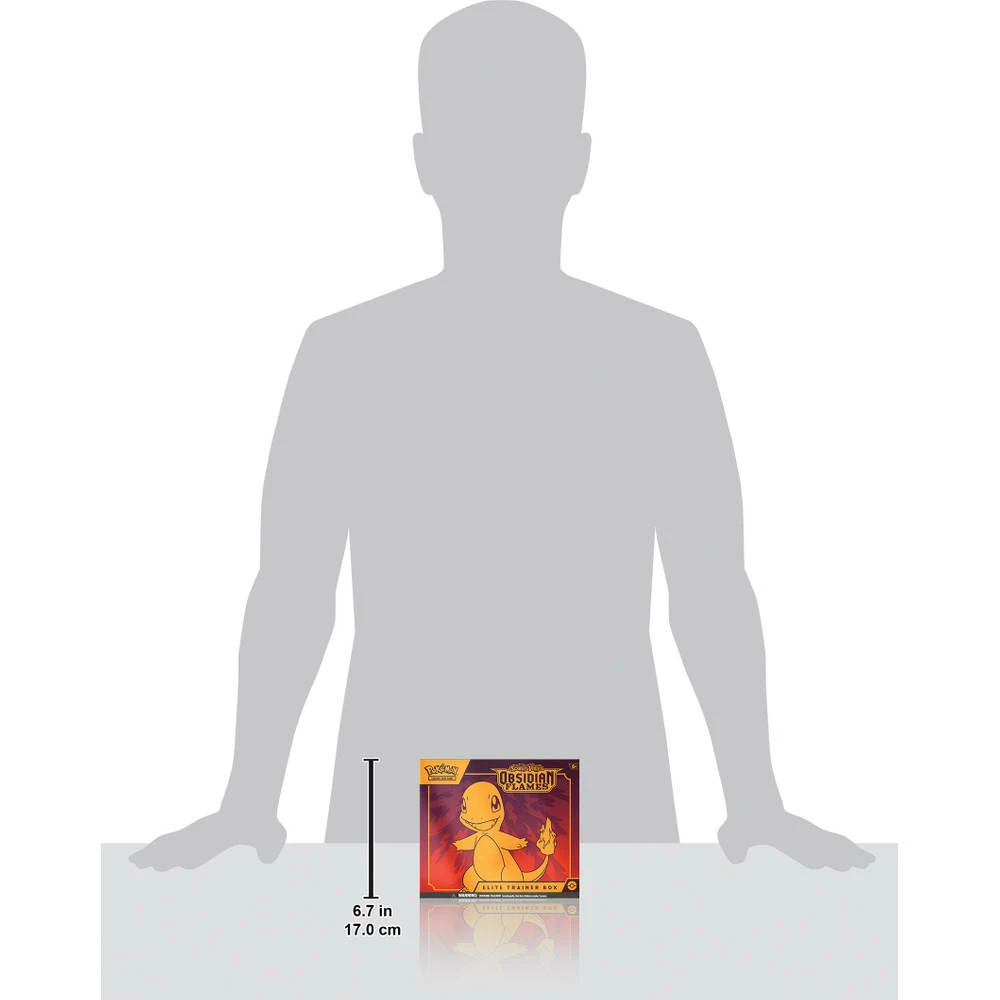 Roodgloeiende sintels verlichten de pikzwarte nacht en vonkjes komen samen in een vuurzee wanneer Charizard Ex opkomt met nieuwe, duistere krachten! Het schitterende Terastal-fenomeen doordrenkt sommige Pokémon ex zoals Tyranitar, Eiscue en Vespiquen met andere typen dan gebruikelijk, terwijl Dragonite ex en Greedent ex meesterschap tonen over hun eigen innerlijke krachten. Niet te evenaren, beloven Revavroom ex, Melmetal ex en meer Pokémon de loop van de strijd te veranderen in de Scarlet & Violet – Obsidian Flames-uitbreiding!