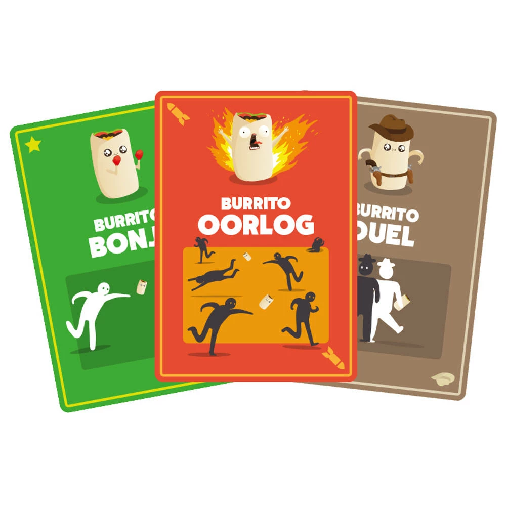 - In de verpakking zitten 120 kaarten, twee speelgoedburrito’s van schuimrubber, zes builfiches, een embleem en spelregels.