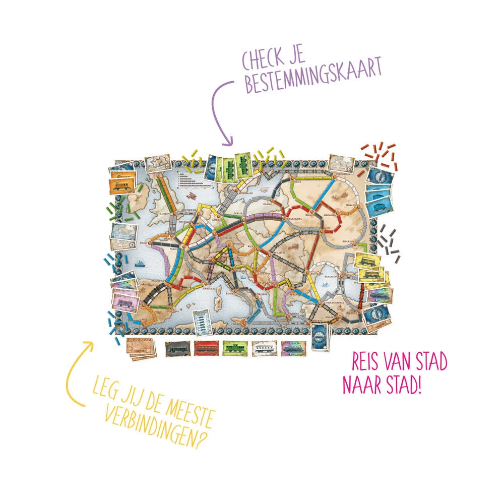 Leg als eerste jouw treinroute neer in dit leuke familiespel Ticket to Ride Europe en win het spel!