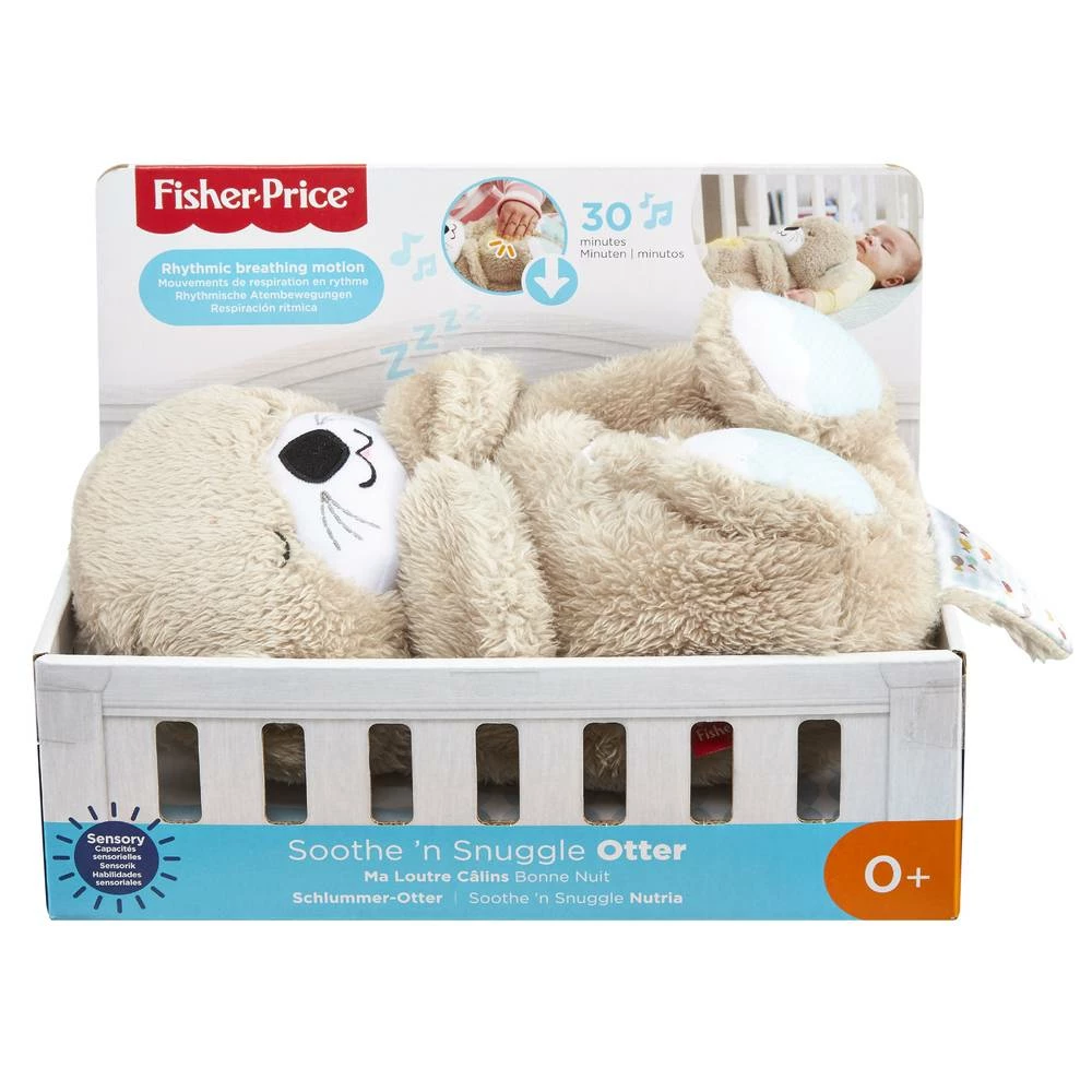 De Fisher-Price bedtijd otter is een uniek, pluche sluimerspeeltje dat jouw baby troost biedt, bijna net zoals je dat zelf zou doen. Het beestje heeft een zacht buikje dat omhoog en omlaag beweegt in een ritmische beweging en imiteert zo jouw ademhaling. In combinatie met tot 30 minuten aan rustgevende muziek, geluidjes en zachte verlichting, helpt dit je kindje om op een natuurlijke manier rustig te worden. Met het lieve gezichtje, de super behaaglijke stoffen en satijnachtige staart, is de kalmerende bedtijd otter een perfect sluimervriendje voor je baby.