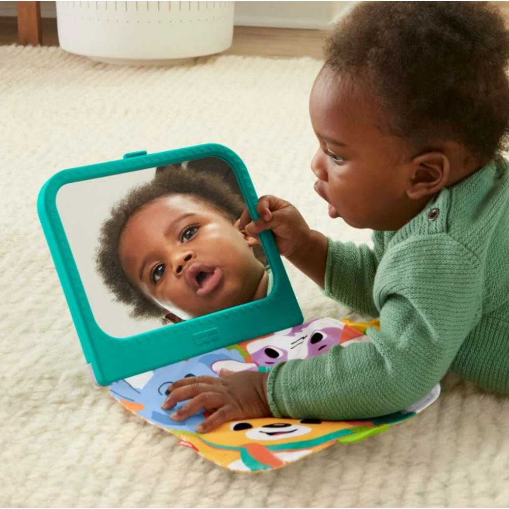 De Fisher-Price ritselende vriendjes activiteitenspiegel bezorgt baby’s veel speelplezier. Zo kunnen ze bijvoorbeeld eindeloos op hun buik met de dierenvriendjes spelen. Doordat de vriendjes ritselen, trekken ze meteen de aandacht van de kleine. Naast de dierenvriendjes heeft dit activiteitenspeeltje een extra grote spiegel van hoge kwaliteit en een superschattige ritselmat. Vanwege de handige handgreep kun je de spiegel omhoog zetten, zodat je baby op de buik en zittend kan spelen.