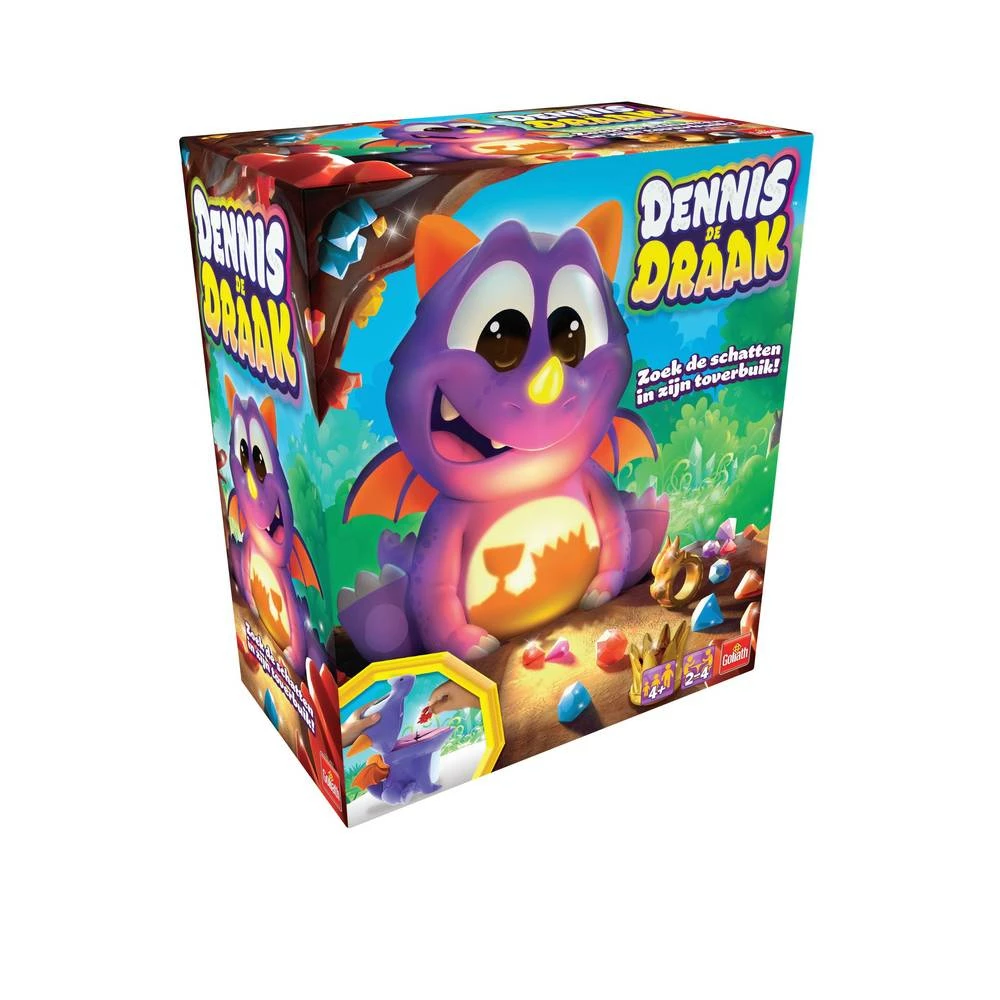 Zet Dennis de draak in het midden van de tafel en stop alle schatten via de mond in de buik. Het doel van dit spel is om zo veel mogelijk juiste schatten te verzamelen. Dit doe je door je hand voor de neus van Dennis te wuiven en goed vanaf de voorkant door de doorzichtige buik heen te kijken. Onthoud goed waar alle kleurenschatten liggen, want al snel kun je niet meer in de buik kijken. Nu licht de neus van Dennis op met een bepaalde kleur, rood, blauw, geel of groen. Doe de mond nu open en pak zonder te kijken een van de juiste schatten! Lukt het je, dan mag je hem houden en anders moet je hem weer terugleggen. Wie aan het einde van de rondes de meeste schatten heeft, wint.