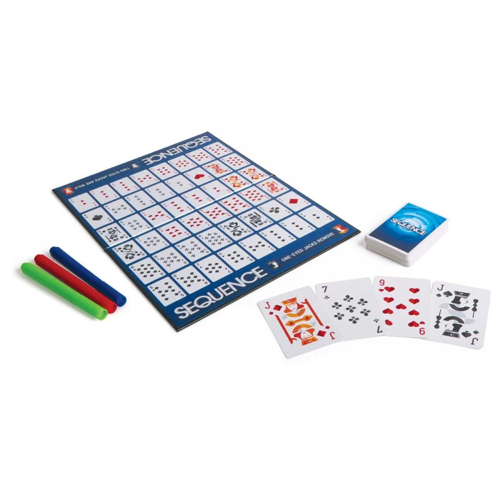 In Sequence speel je elke beurt een kaart en plaats je een fiche op het juiste vak op het bord. Hierbij moet je tactisch te werk gaan en hoef je niet elke keer aansluitend neer te leggen. Het is de bedoeling om uiteindelijk 2 rijen van 5 fiches op het speelbord te krijgen. Die rijen mogen horizontaal, verticaal en diagonaal neergelegd worden. Weet jij dit leuke spel te winnen?