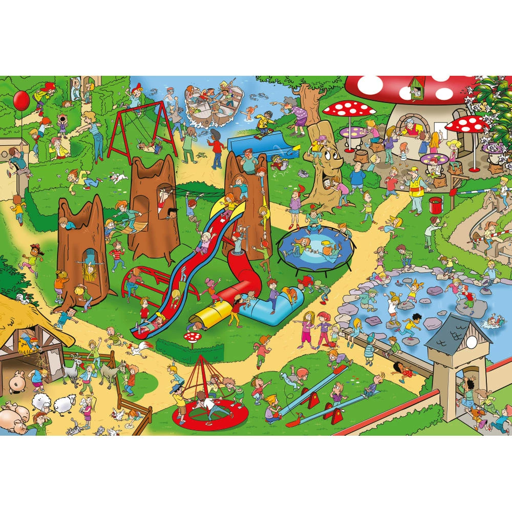 De speeltuin is erg leuk. Ben je klaar voor een nieuwe uitdaging? Leg alle 1000 stukjes van deze schitterende Wacky World puzzel en ontdek een leuke afbeelding van een bomvolle speeltuin.