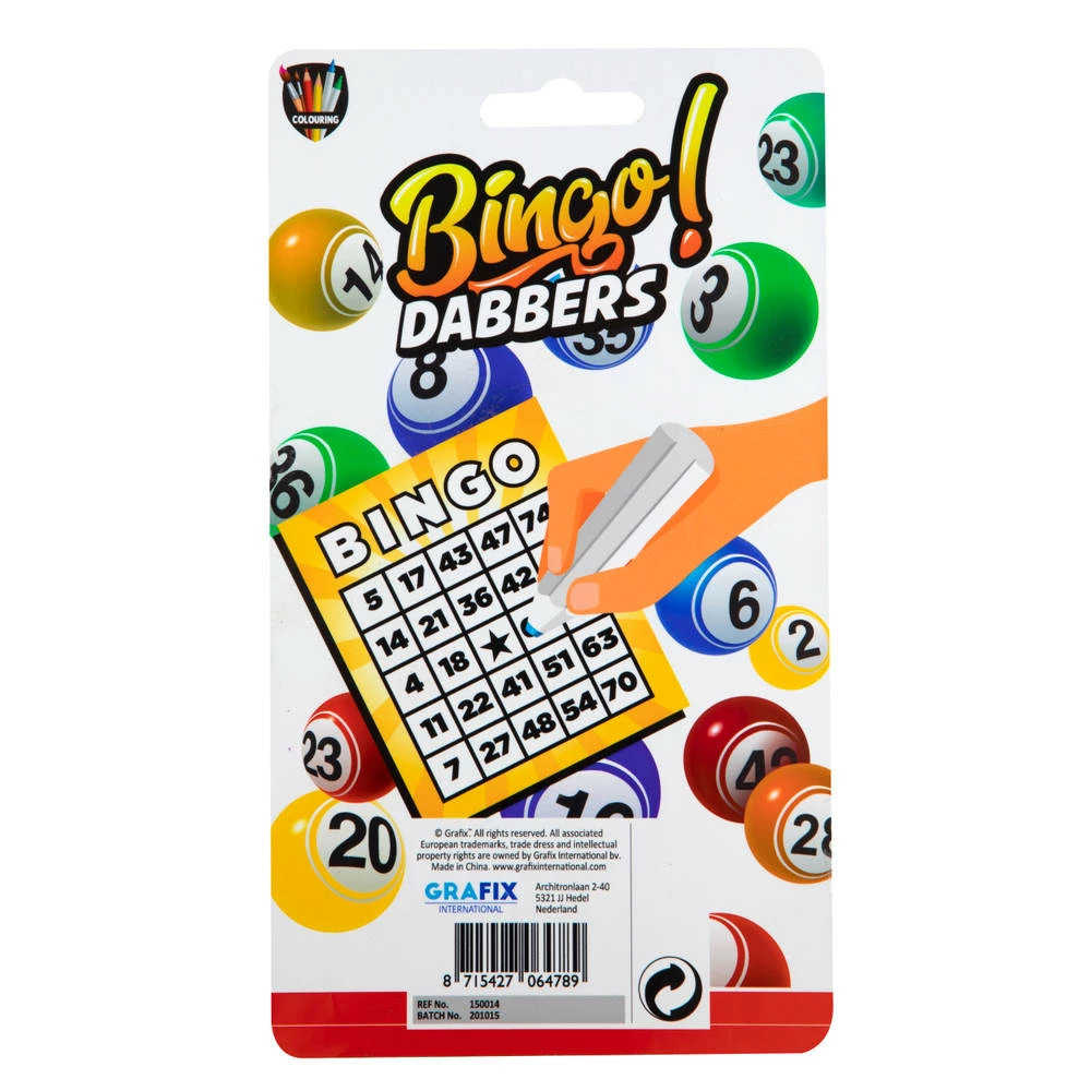 Een rijtje vol? Bingo! Kleur nu de juiste nummertjes weg op je bingokaart met deze bingo dabbers. De set bevat 3 stiften.