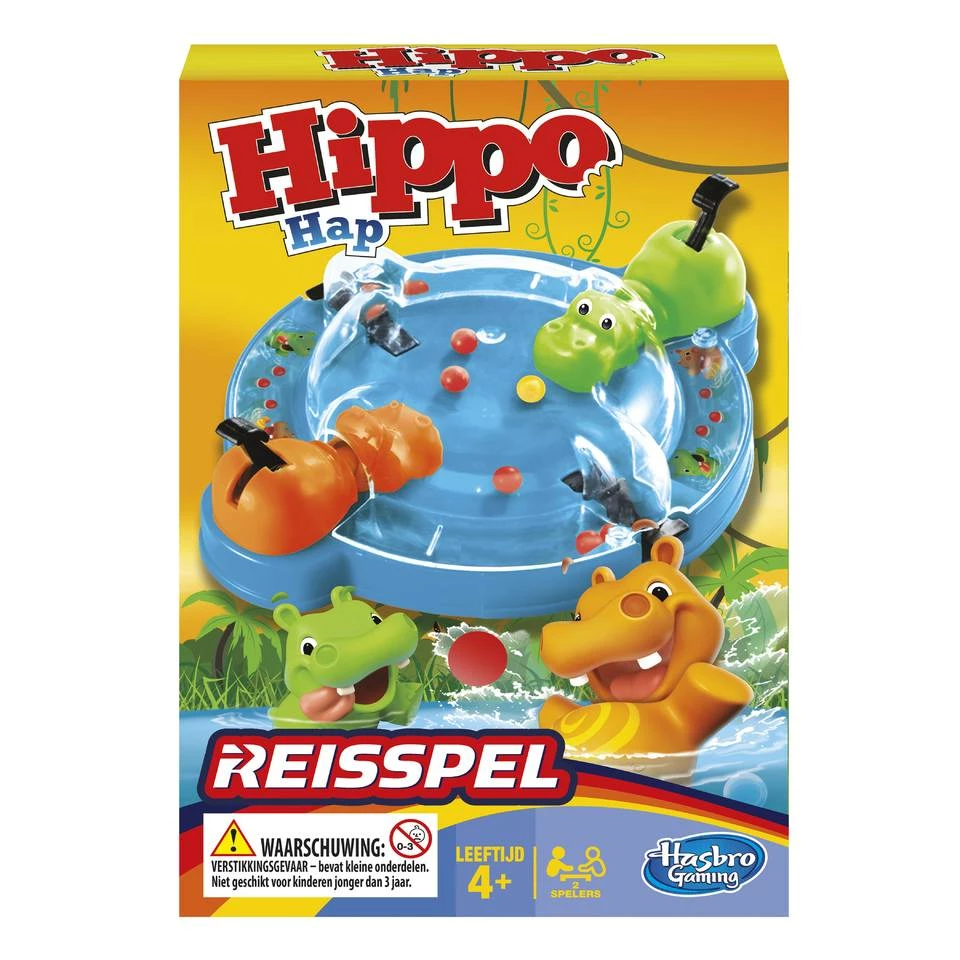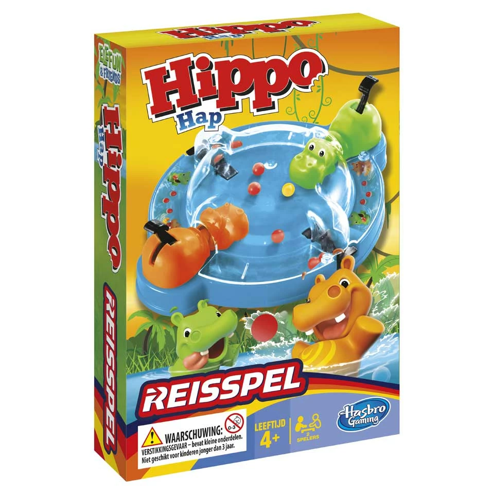 Hap, hap, hap… daar zitten een paar hongerige hippo’s! Deze reisversie van het bekende Hippo Hap-spel heeft 2 happende hippo’s en een massa knikkers om op te schrokken. Met een plastic deksel om te voorkomen dat de knikkers aan de rol gaan, kun je dit compacte spel altijd en overal spelen.