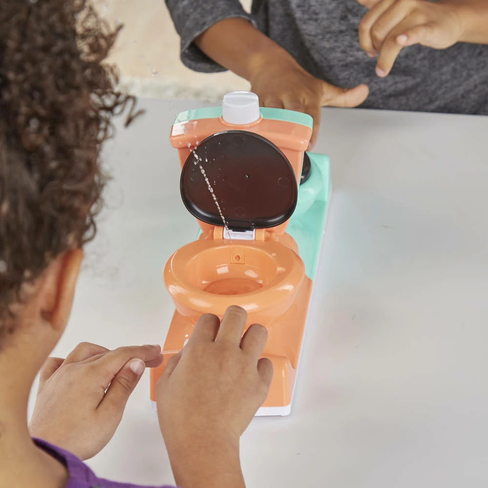 Wie wordt als eerste natgespoten? Toilet Pret Duel is een spannend behendigheidsspel waarbij spelers sneller aan de toiletrol moeten draaien dan de andere speler, om de ander nat te maken.
