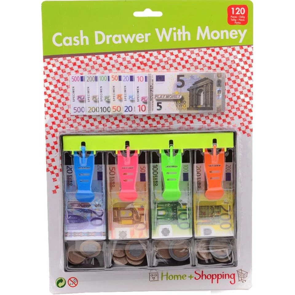 - Inhoud: 1 kassalade, 1 set muntgeld en 1 set briefgeld.