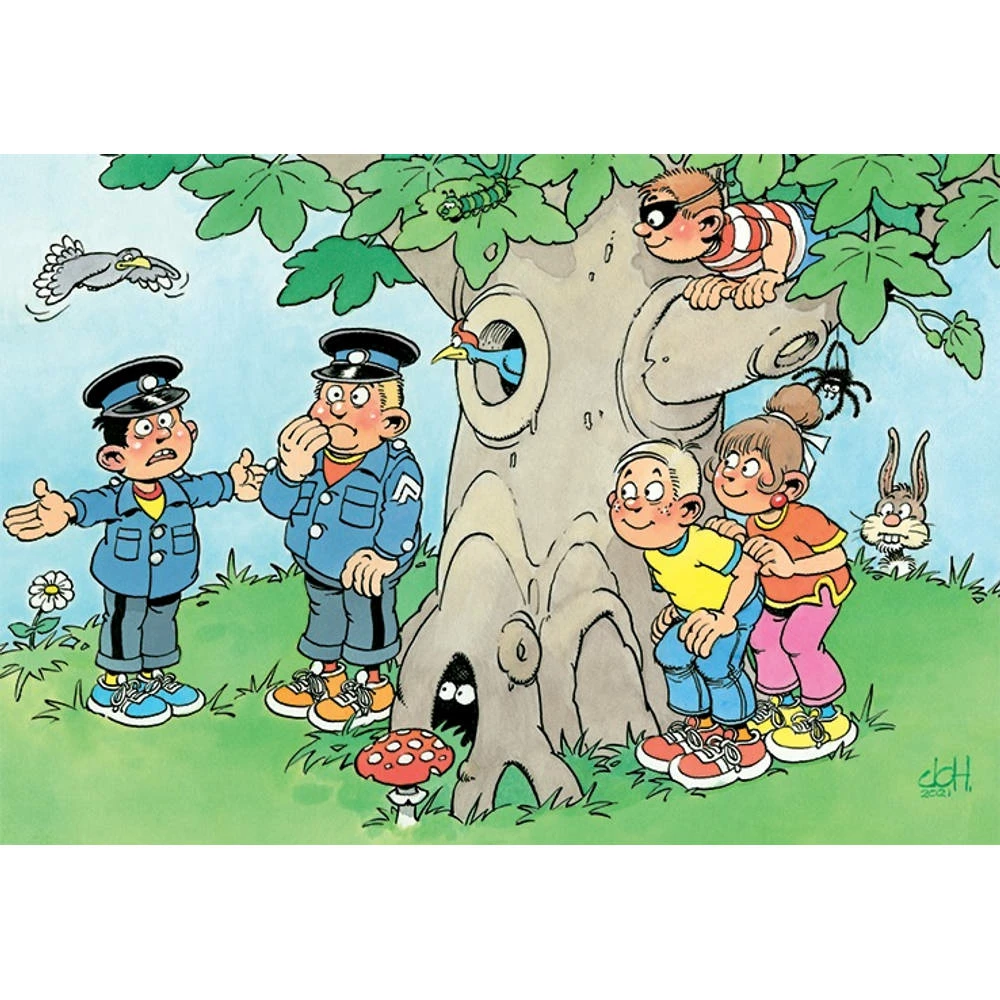 Als jij ook zo gek bent op verstoppertje spelen, dan is deze Jan van Haasteren Junior puzzel Verstoppertje echt iets voor jou. Leg de 150 stukjes aan elkaar en ontdek een kleurrijk plaatje. Ontdekken de politieagenten de verstopplek? Jan van Haasteren Junior laat kinderen kennismaken met de absurde wereld van deze beroemde puzzels. Kinderen zetten hun eerste stappen in de humoristische illustraties van Jan van Haasteren met deze Junior puzzel.