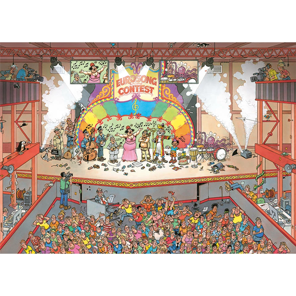 - Kleurrijke Jan van Haasteren puzzel met een humoristische afbeelding van het Eurovisie songvestival.
