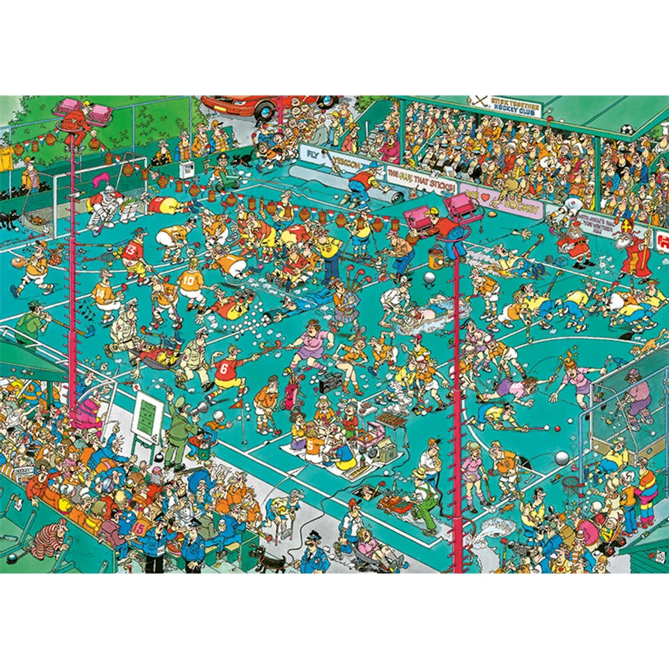 - Op deze Jan van Haasteren puzzel is een afbeelding te zien van de hockey kampioenschappen.