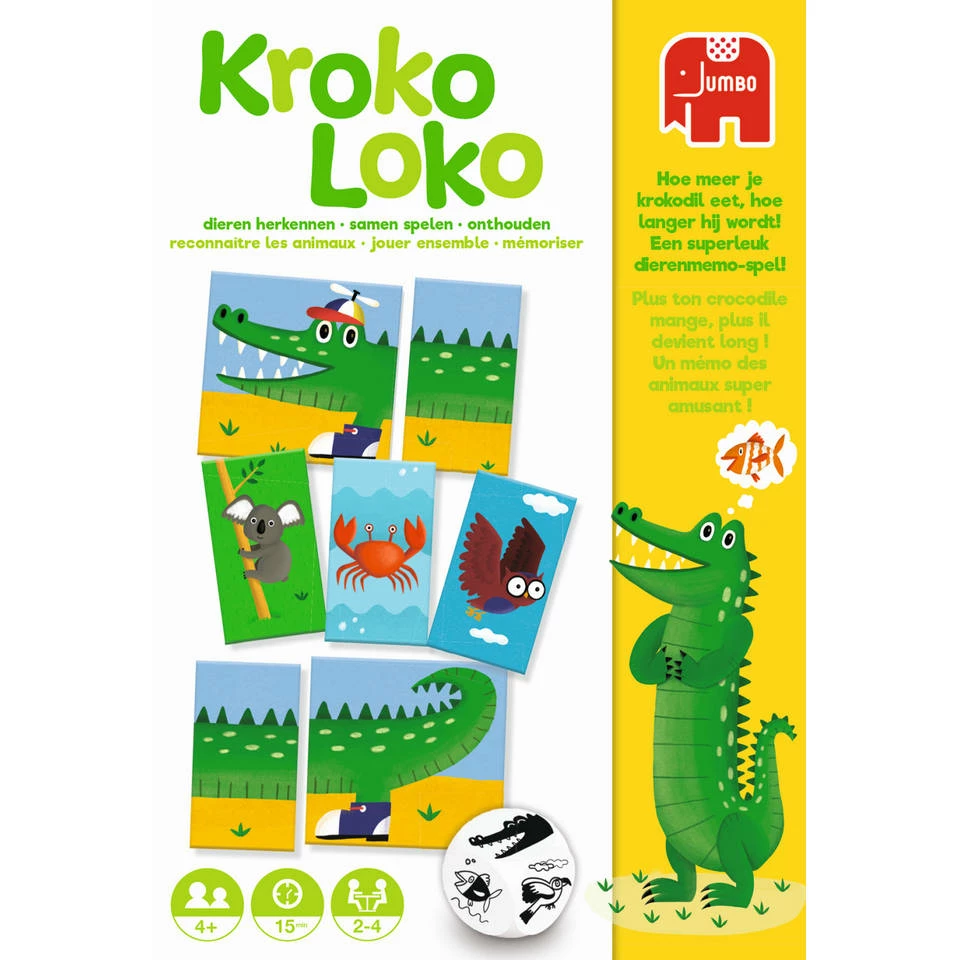 Kroko Loko van Jumbo is een superleuk dierenmemo spel waarmee jonge kinderen spelenderwijs leren dieren herkennen, samen spelen en onthouden.