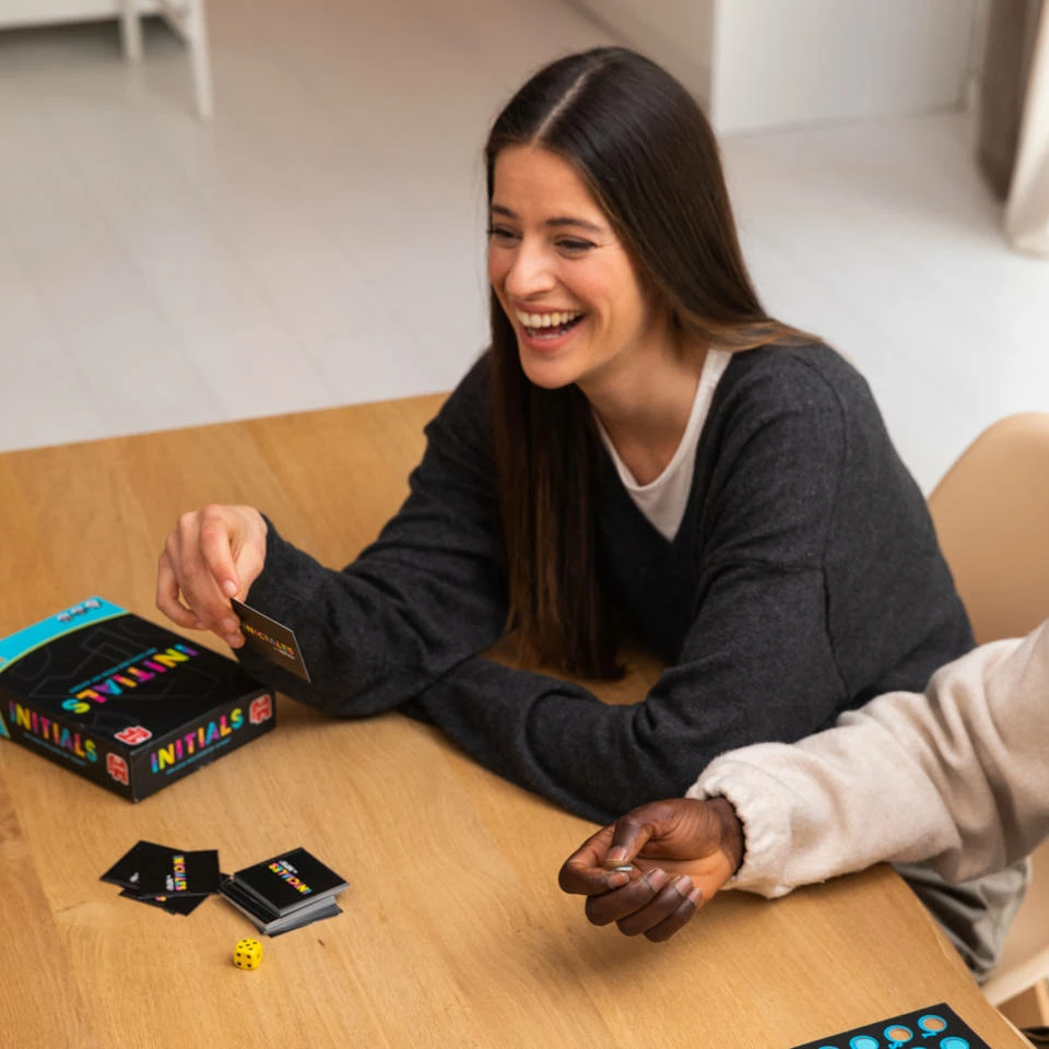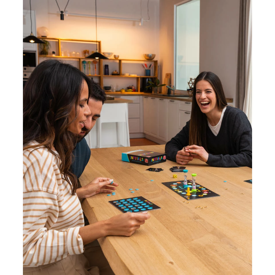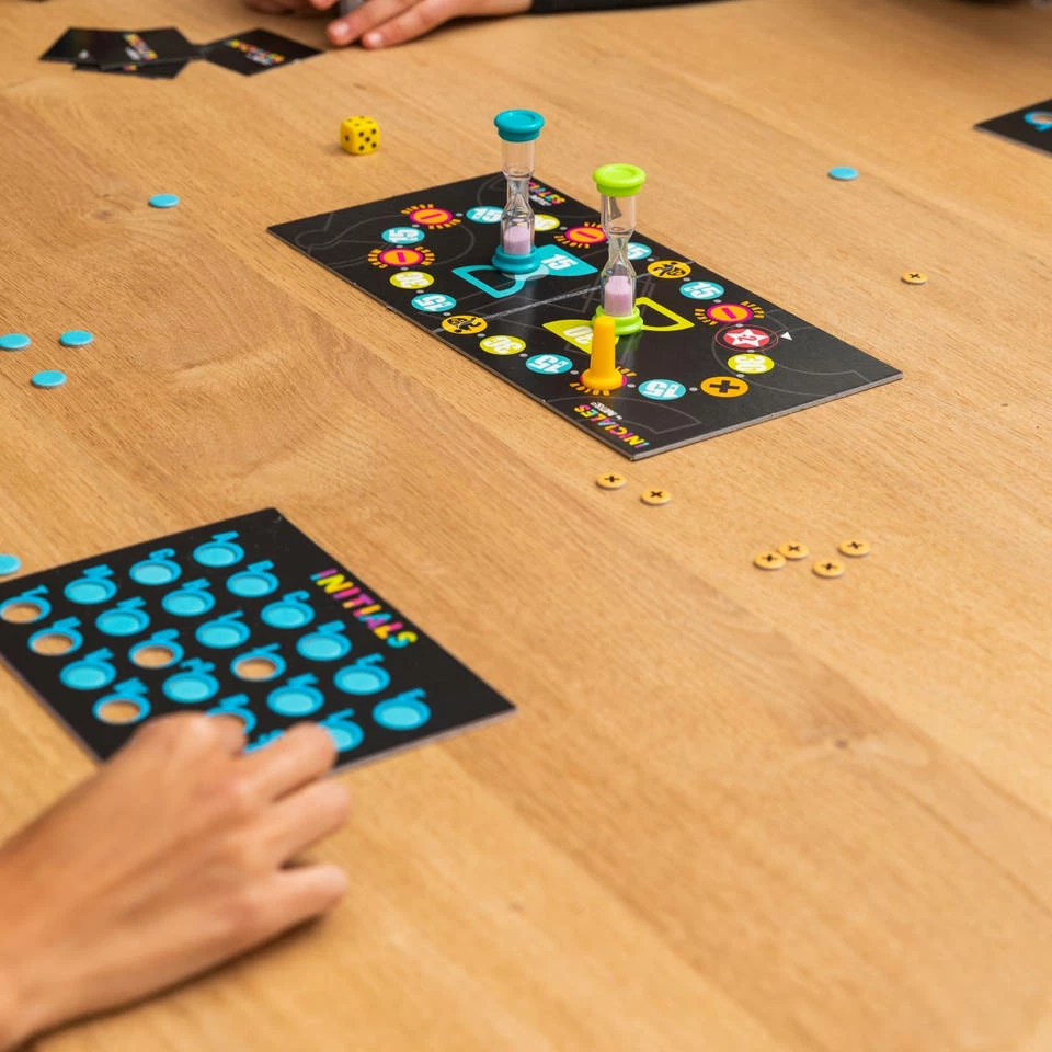 Dit Party & Co Initials partyspel laat je op een leuke manier je woordenschat testen. Zie zoveel mogelijk woorden te bedenken met de verschillende letters van het alfabet. Op die manier win je een fiche en kun je het letterbord van je team vullen. Maar let op: het andere team kan letters stelen en blokkades opleggen. Weten jij en jouw team de overwinning uit het vuur te slepen?