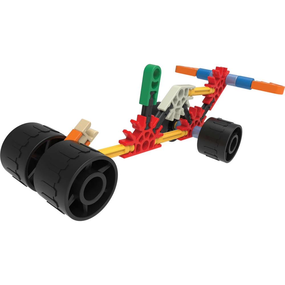 Deze supergave bouwset bevat verschillende kleurrijke K’NEX onderdelen om een dragster te maken. Deze bouwset bestaat uit 40 verschillende staafjes en connectorstukken die in 3D-configuraties kunnen worden gemonteerd. Het bouwen van één van de twee ideeën is, met de ingesloten kleurgecodeerde bouwinstructies voor deze K’NEX dragster bouwset, een superleuke uitdaging voor elke enthousiaste bouwer.