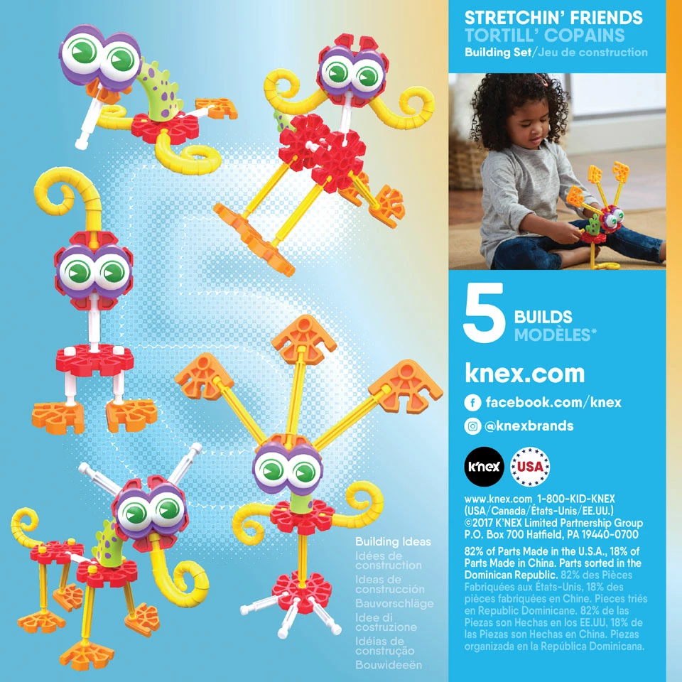 - Kinderen kunnen kleurrijke K’NEX vriendjes met een hals of staart die echt kan uitrekken bouwen.