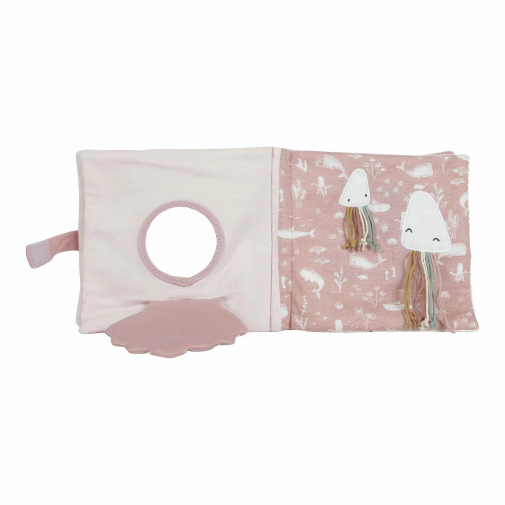 Het kleurrijke Little Dutch activiteitenboekje is een leuk en schattig boekje voor de allerkleinsten! Met dit roze boekje zal je baby zich geen moment vervelen. In dit boekje zijn er veel vrolijke onderwaterdieren te ontdekken en valt er veel te beleven met de verschillende materialen en activiteiten. Het boekje is uitgerust met een rammelaar, een knisper en een spiegeltje. Ook heeft het boekje verschillende labels om aan te voelen. Dit prikkelt niet alleen de zintuigen, maar is ook goed voor de ontwikkeling van de oog-handcoördinatie. Je baby kan al vanaf de geboorte van dit mooie boekje genieten.