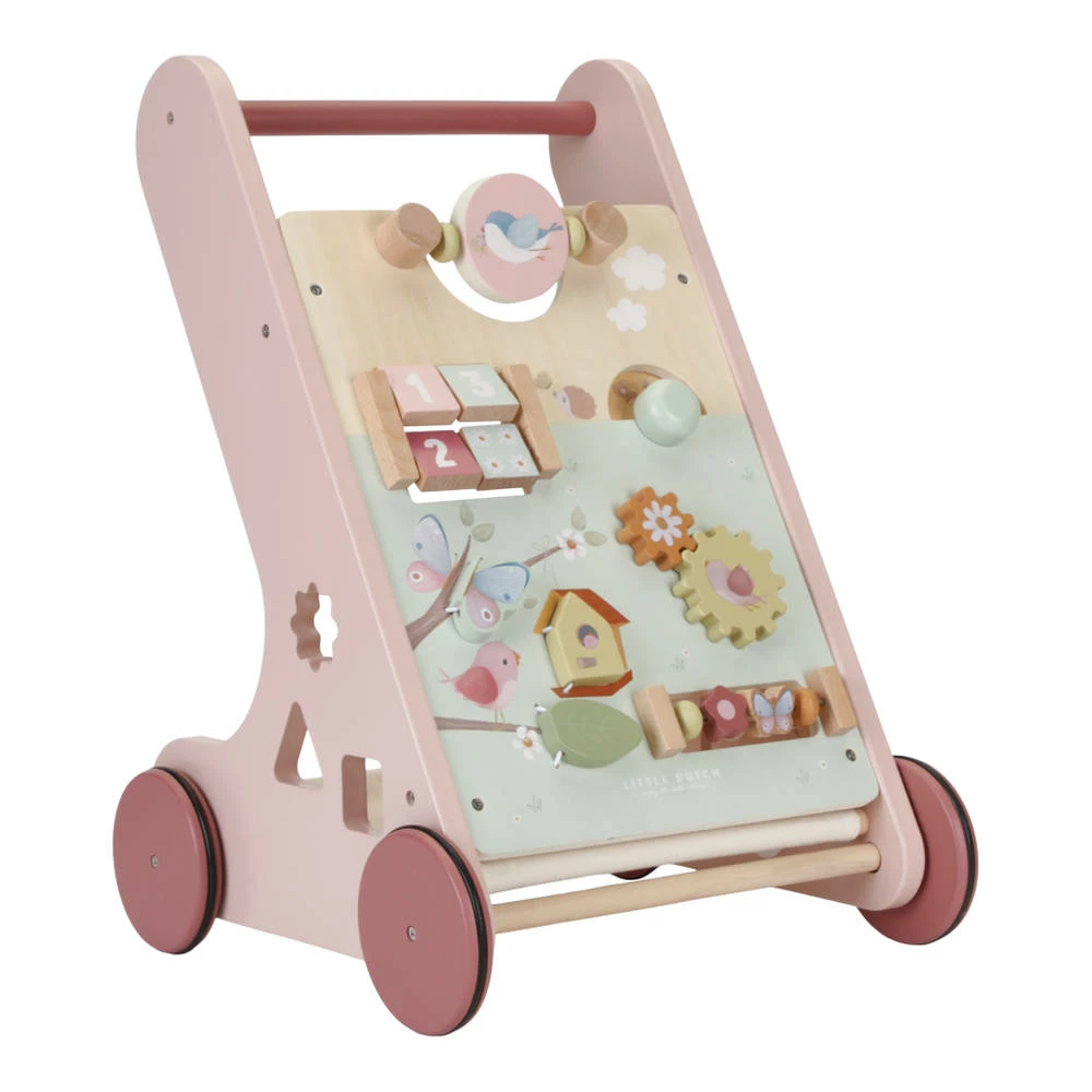Je kindje kan de eerste stapjes zetten met deze handige Little Dutch Flowers & Butterflies activiteitenloopwagen.