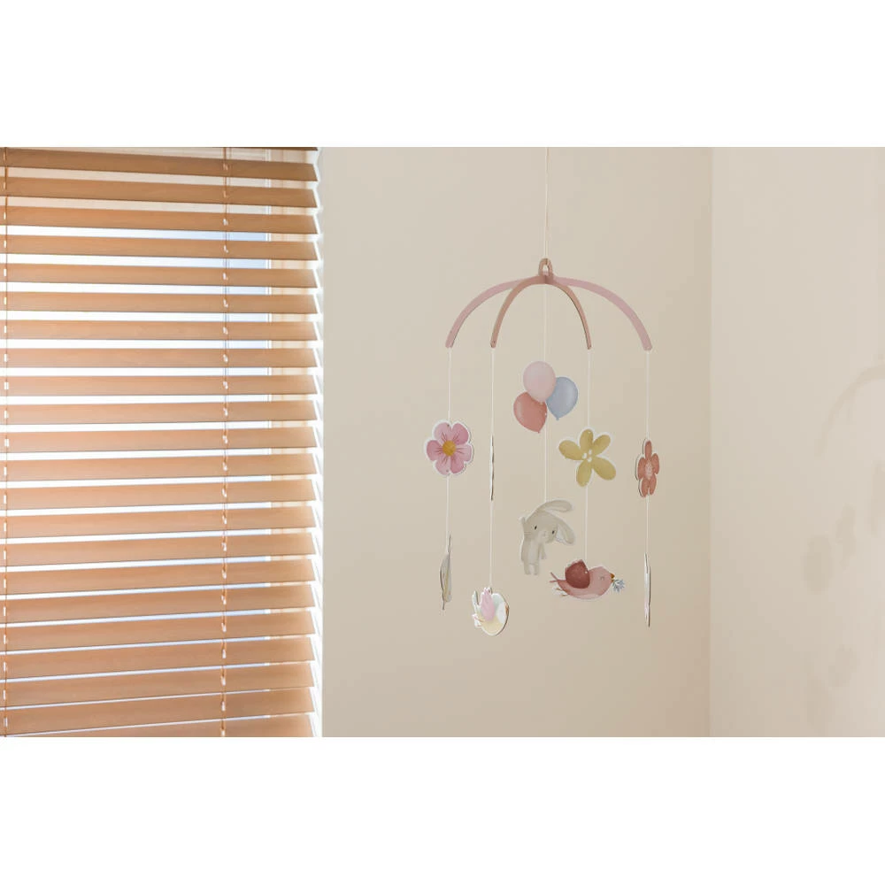 Met deze Little Dutch Flowers & Butterflies kartonnen mobiel boven de wieg kan je kindje genieten van een tafereel van Flowers & Butterflies. Zie jij de vogeltjes rondvliegen? Er is ook een vlinder bij! En heb je de ballonnen gezien? Die zorgen ervoor dat het konijntje naar boven zweeft. Er zijn wel tien kartonnen figuurtjes om te ontdekken en te bewonderen. Het is niet alleen een prachtige decoratie voor de kinderkamer, maar de schattige babymobiel stimuleert ook de visuele ontwikkeling en geeft een gevoel van rust en kalmte.