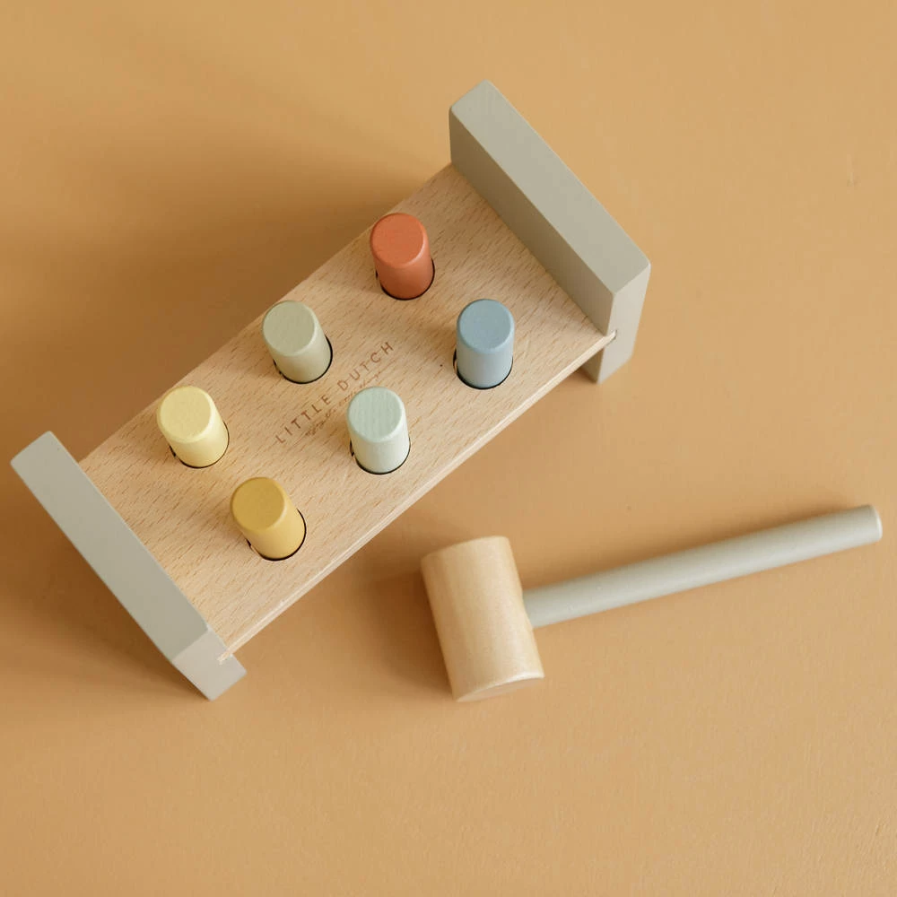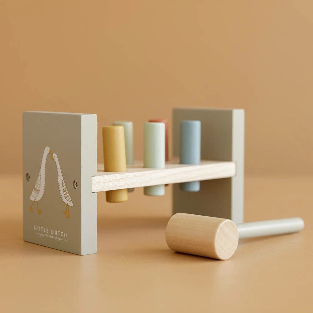 Deze mooie, groene hamerbank Little Goose van Little Dutch stimuleert spelenderwijs de oog-handcoördinatie van je kind.