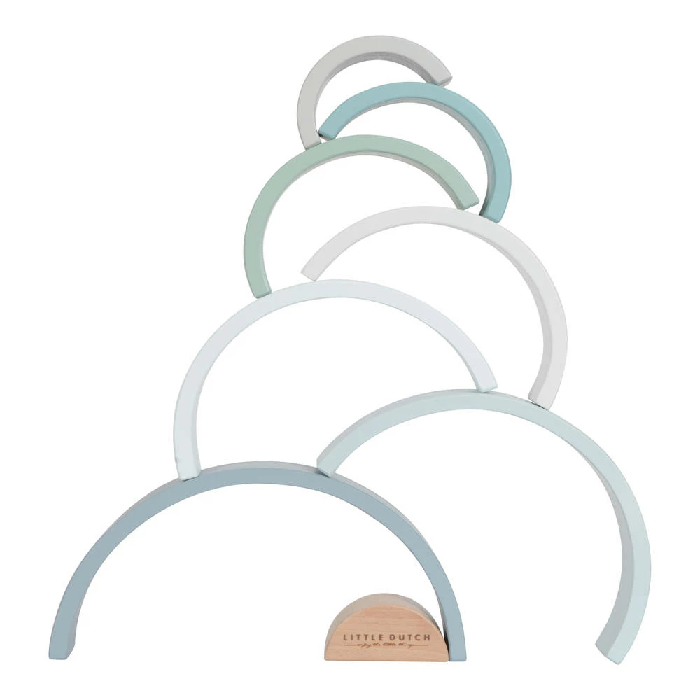 Leuke Little Dutch regenboog met een mooie, blauwe kleur. Deze regenboog is een houten stapeltoren in de vorm van een prachtige regenboog.