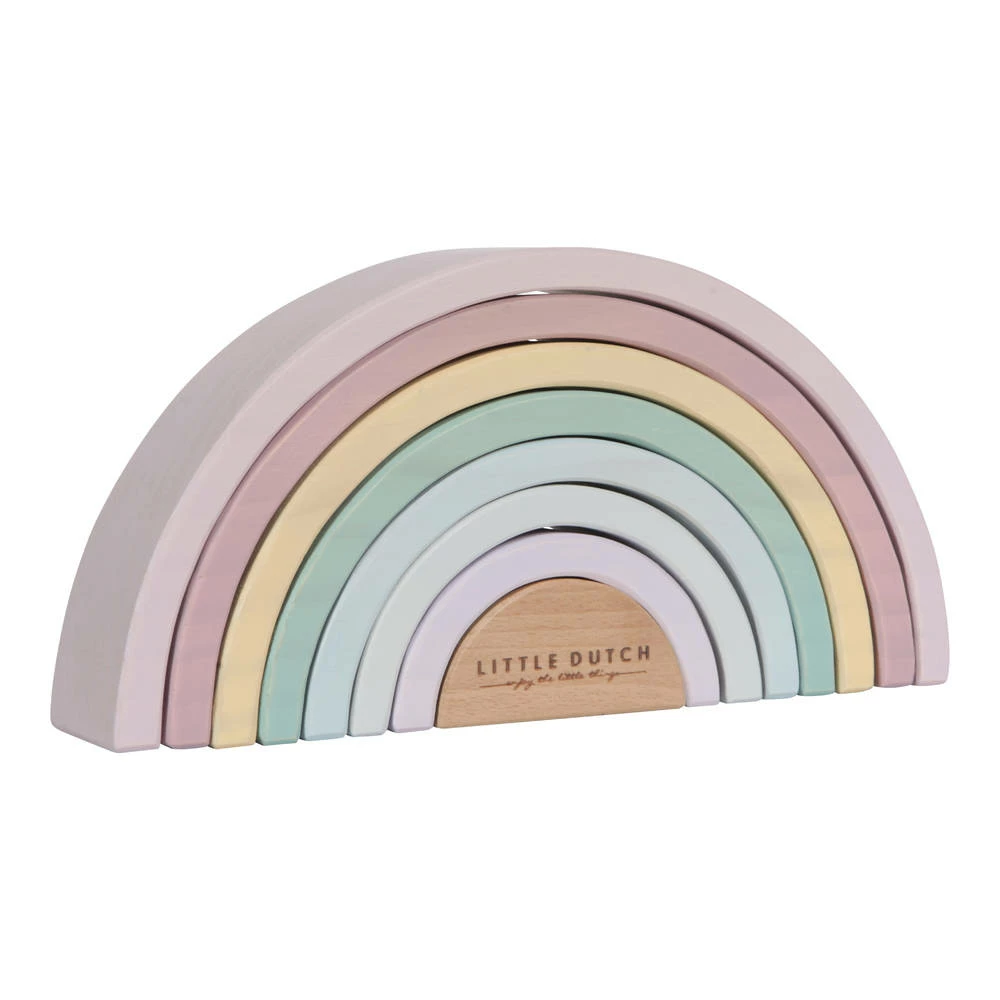 Deze roze Little Dutch regenboog is een musthave voor je kind! De regenboog is een houten stapeltoren in de vorm van een prachtige regenboog.