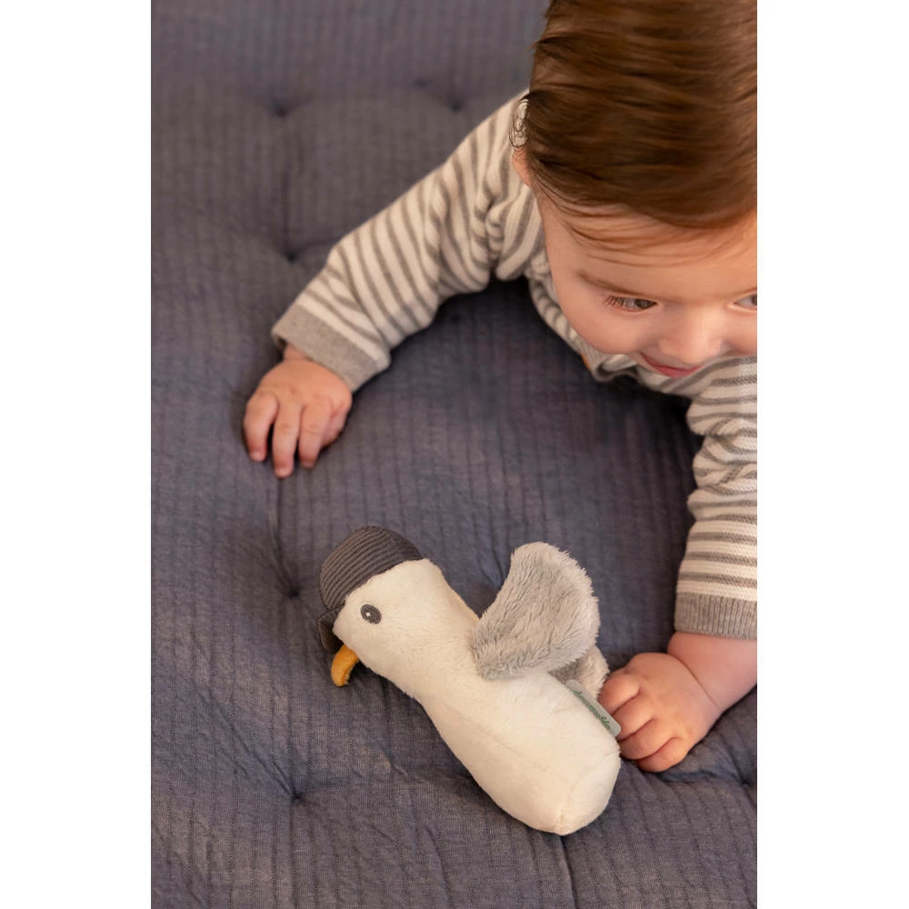 Als je kindje in deze schattige Little Dutch Sailor’s Bay knijprammelaar in de vorm van een meeuw knijpt hoor je een grappig geluidje!