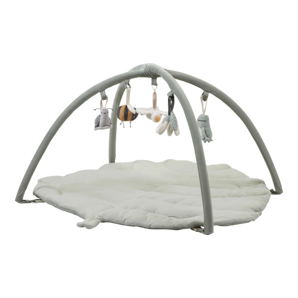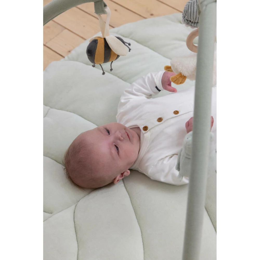Dit zachte, gewatteerde Little Dutch speelkleed in de vorm van een blad is een geweldige speelplek voor baby’s. Aan de bogen hangen schattige speeltjes van Little Goose en zijn beste vriendjes, die baby’s stimuleren om ze aan te raken en te ontdekken.