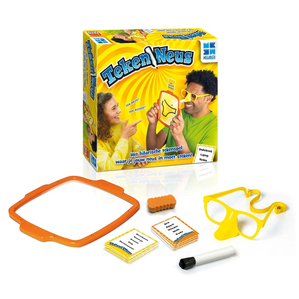 TekenNeus, een gezelschapsspel met TekenNeus bril en uitwisbaar bord! Hoe goed kun jij tekenen met je neus?