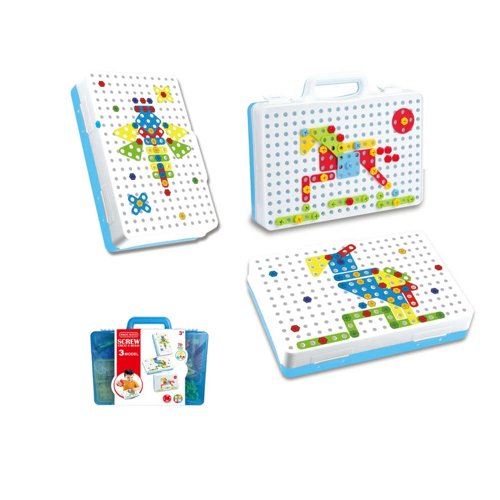 - De set bevat een elektrische boormachine, 30 stuks schroeven en 48 blokken.