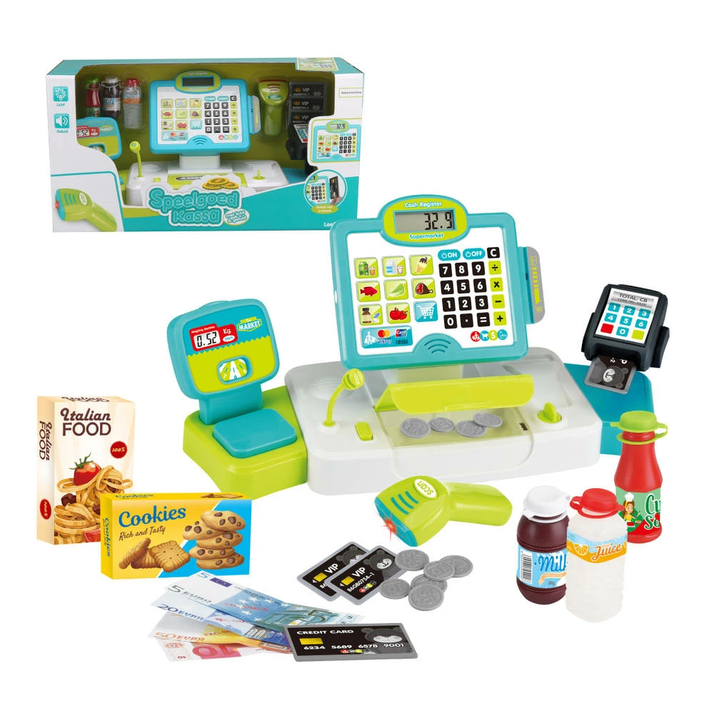 Kinderen leren spelenderwijs om te gaan met geld tijdens het boodschappen doen met deze speelgoedkassaset met licht en geluid. De kassa lijkt erg realistisch en wordt geleverd met tal van accessoires, waaronder boodschappen, betaalpasjes en geld. Het kleurrijke ontwerp zorgt ervoor dat kinderen graag spelen met deze speelgoedkassa. Bovendien speelt de kassa een melodietje wanneer je de artikelen scant. Dit speelgoed is erg leuk om mee te spelen en bovendien leert het kinderen een aantal basisvaardigheden zoals tellen.
