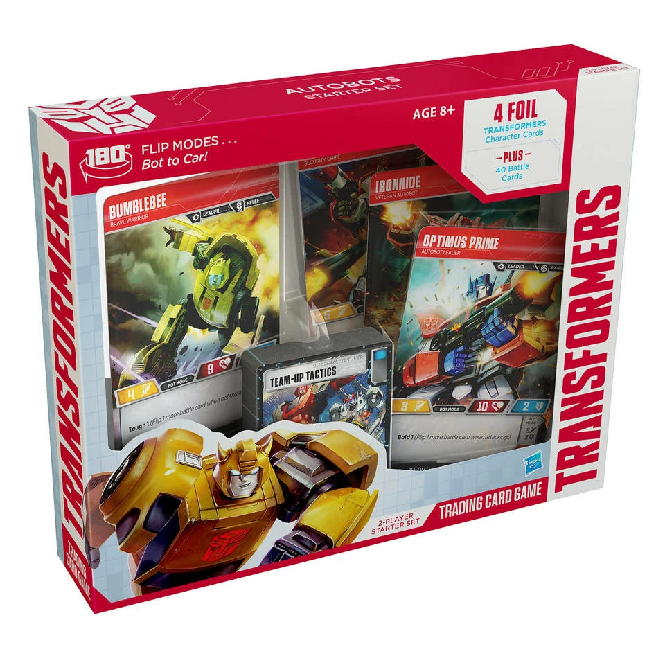 De extra grote karakterkaarten, welke twee keer de grootte van een gewone speelkaart hebben, maken het mogelijk om de Autobots en Decepticons te laten transformeren van auto naar robot en omgekeerd. Je kunt deze dubbelzijdige kaarten omdraaien om zo te wisselen tussen auto en robot. Een battle deck bestaat, naast deze extra grote karakterkaarten, ook uit kaarten waarmee je jouw robots kunt versterken. Naast de bekendste karakters als Optimus Prime en Bumblebee is er nu ook ruimte voor minder bekende Transformers zoals Sunstorm. Deze Autobots starterset is geschikt voor maximaal twee spelers.