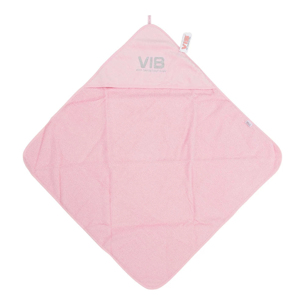 Deze roze-zilveren VIB badcape Very Important Baby kun je om je baby heen wikkelen voor een extra warme laag zodat de kleine VIP goed op temperatuur blijft.