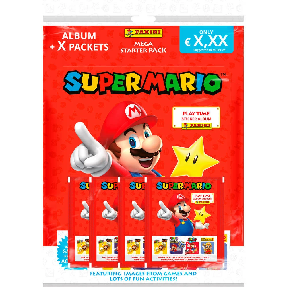 Een album vol leuke activiteiten, met stickers van Super Mario en van vier onvergetelijke videogames: 3D World, Odyssey, Party Superstars en Maker 2. De complete verzameling bestaat uit 176 stickers.