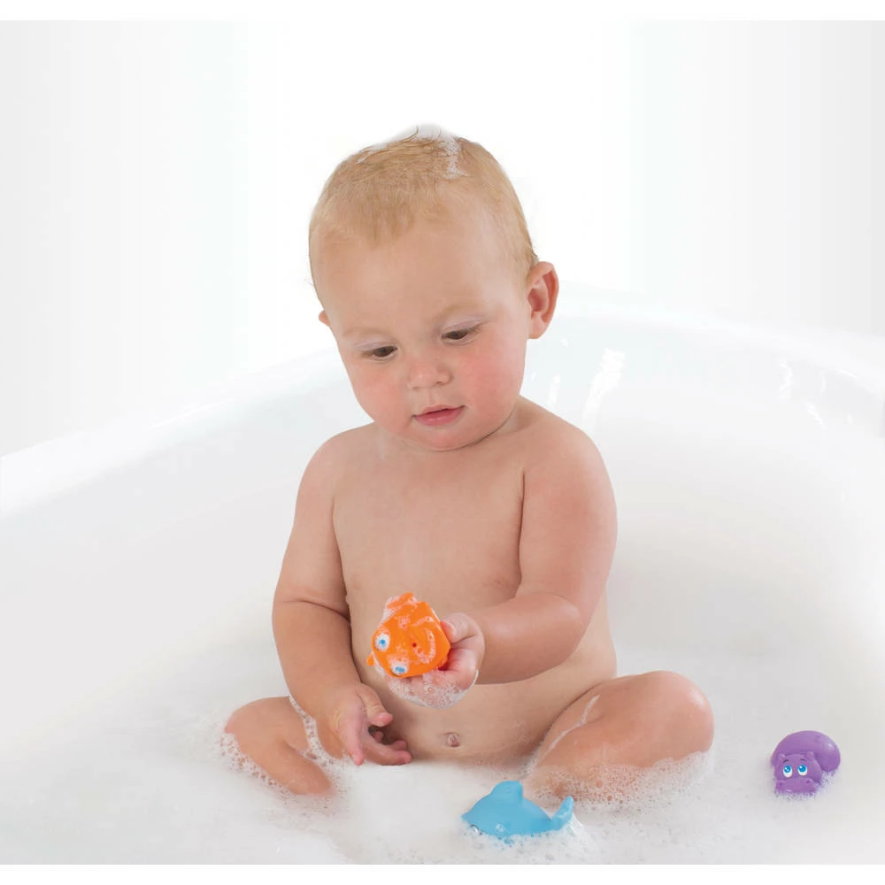 Ga lekker badderen met deze vier badspuitfiguren van Playgro. Deze waterdieren zorgen voor badplezier, vul ze met water en spuit het water eruit!