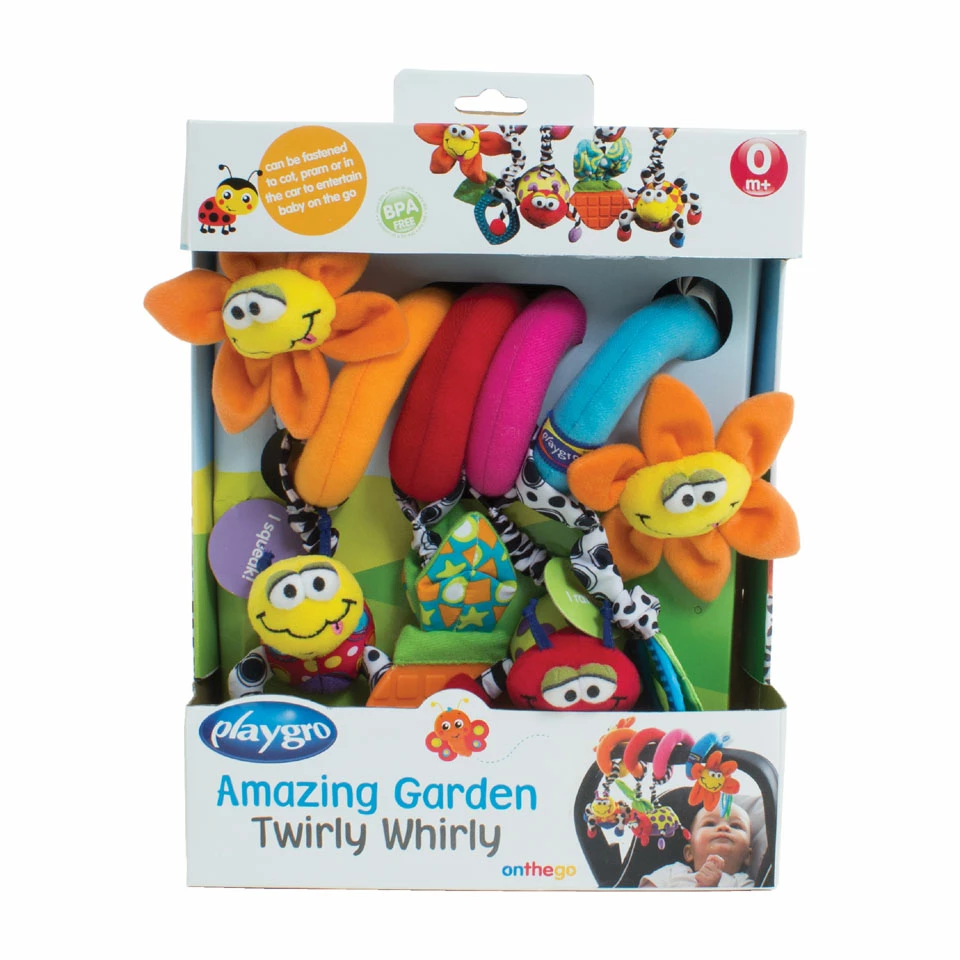 Deze kleurrijke boxspiraal tuindieren Garden bestaande uit verschillende materialen, kleuren en hangspeeltjes zal je kindje onderweg goed vermaken.