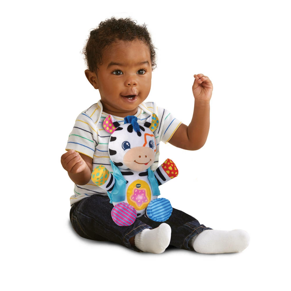 Speel met deze vrolijke zebra en luister naar allerlei verschillende liedjes, melodietjes en geluidjes. Druk op de knipperende ster-toets om vrolijke reacties te horen, kennis te maken met kleuren en nog veel meer!